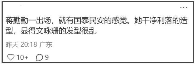 值得一提的是,50岁的蒋勤勤这一次亮相时装周同样生图抗打。在和小她13岁的文咏珊同框的时候,蒋勤勤不管是状态还是气质都完胜对方。网友直言蒋勤勤一出场,就有国泰民安的感觉,她身上散发出的气质让身旁的文咏珊瞬间失色,法拉利老了还是法拉利。