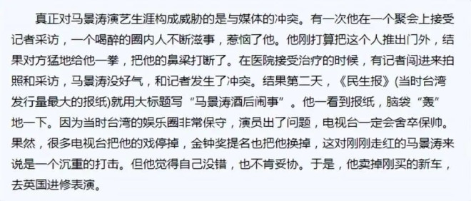 次日在医院接受治疗时,有记者闯入病房拍照,马景涛再度展现暴脾气,结果被曝出“酒后闹事”的新闻。