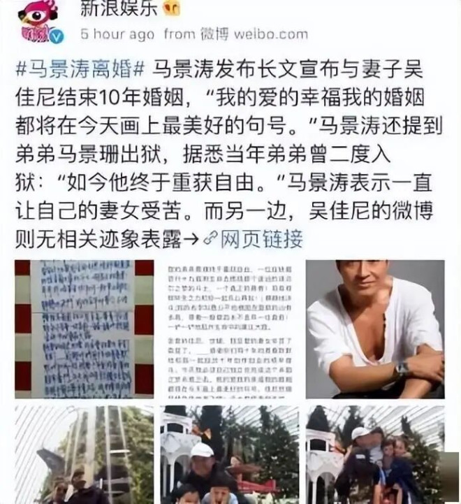 这期间,马景涛与一个名叫唐韵的圈外人在美国相识,随即结婚,育有一女。