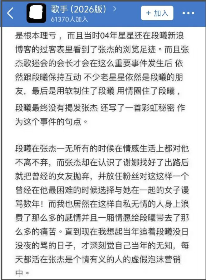 早就有张杰老粉出面爆料,提到段曦对一无所有的张杰不离不弃,长期忍受着外界谩骂,张杰从来没有为段曦说过一句话。