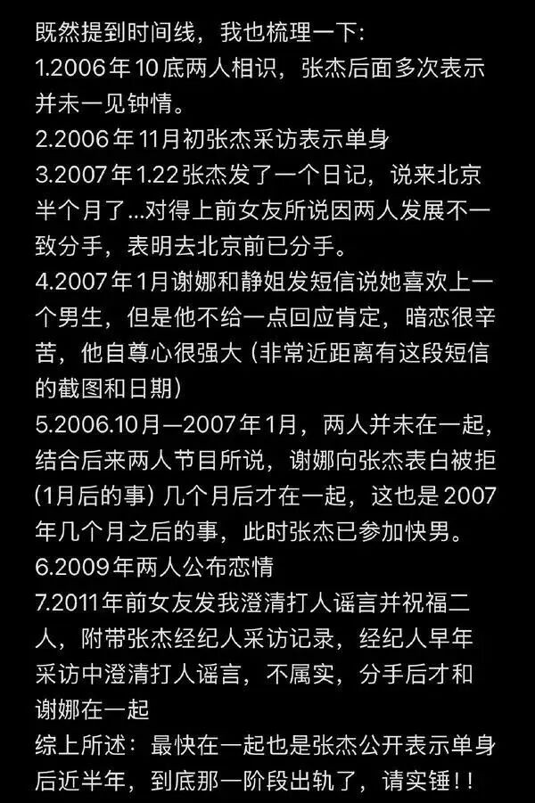 从时间线上看,张杰2006年与谢娜相识,2007年确认关系,理论上不存在出轨。