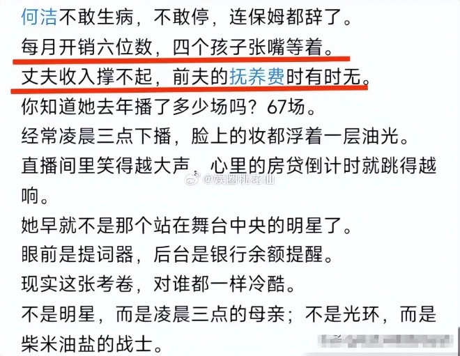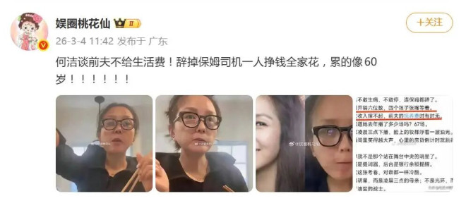 为了“降本增效”,何洁已辞退了家里的保姆和司机,从接送孩子到处理家务都亲力亲为。昔日超女的光环,似乎已被柴米油盐和育儿琐事磨去了亮色。