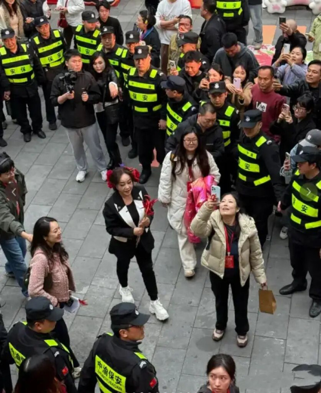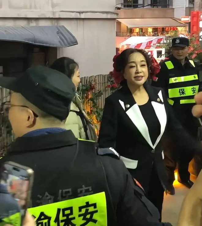 当天刘晓庆现身时,排场还是挺大的,周围围了一圈保安、简直比围观的群众还要多。