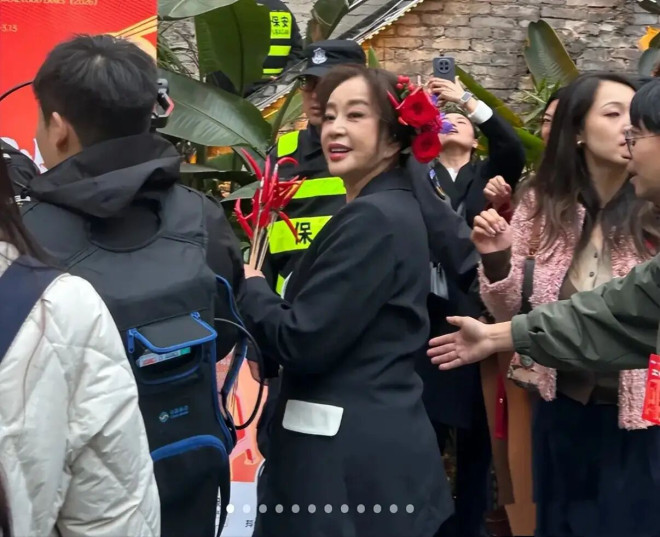 刘晓庆私下里也很亲和,遇到粉丝还热情的微笑着打招呼,是大家熟悉的“庆奶”模样。