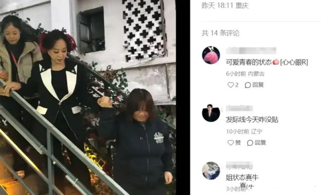 而出现在重庆街头的刘晓庆,身材饱满、凹凸有致,妆容精致、年轻大方。她把“不服老”刻在了心里,一把年纪维持着年轻状态。