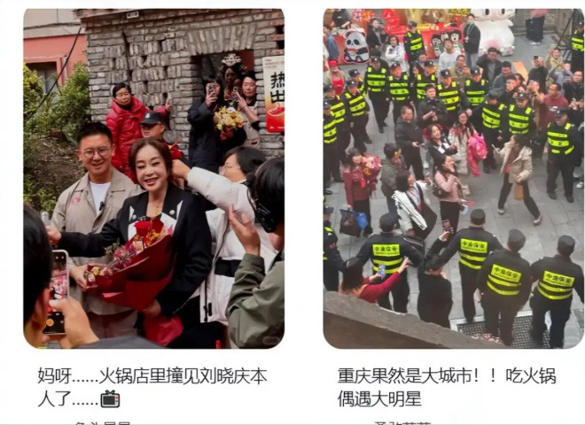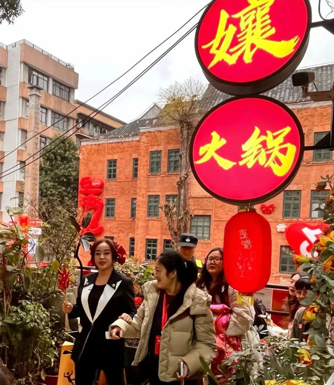 因为刘晓庆的到来,周边的食客也多了起来。大家簇拥着一起向前走,保安就围在刘晓庆身边,生怕遇到太热情的粉丝,造成不可控的场面。