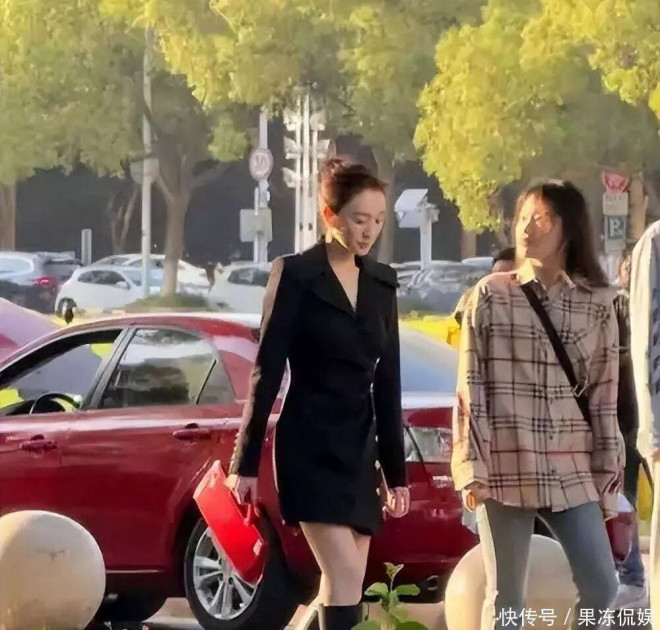 李小冉身穿黑色西装裙,优雅地站在街头,旁边的那位大叔直接看呆了,表情完全没控制住,最终被路人拍了个正着。