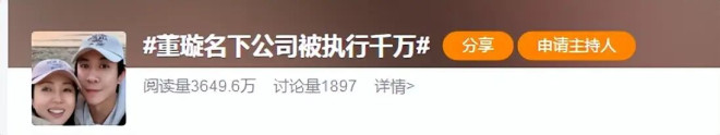 最近消息,董璇名下的艺璇文化忽然冒出一条“被恢复执行信息”,金额高达4942万元,被执行人高某正是其前夫高云翔,申请原告为“唐德影视”。