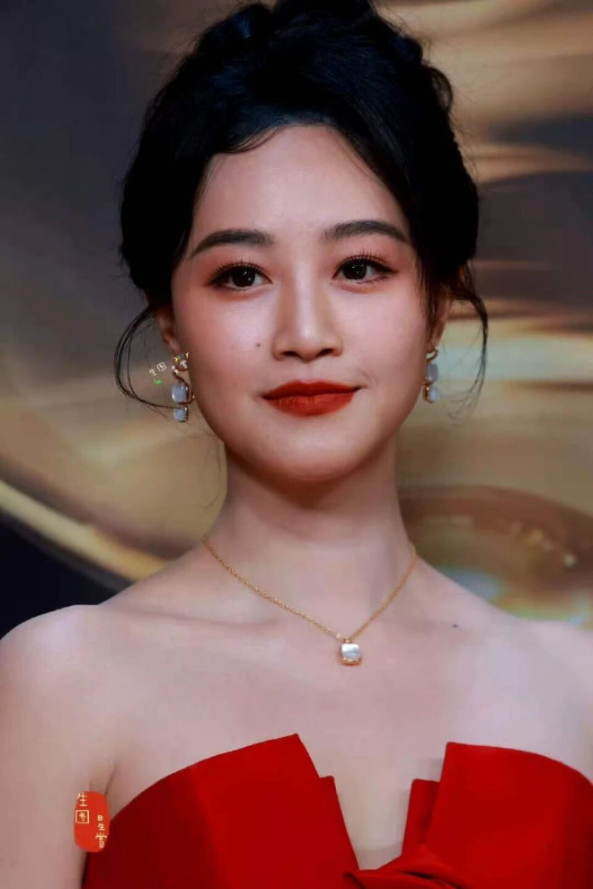 国泰民安的方圆脸型,大气舒展的五官,嘴角微微上扬,带着雍容华贵的风范。