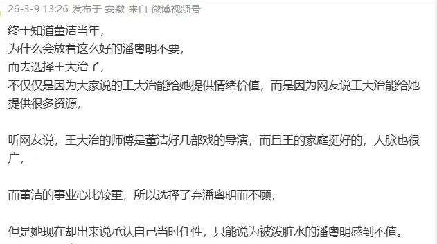 评论区不少粉丝指这是潘粤明对董洁开口诉说往事的回应。