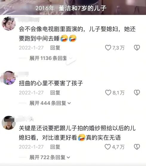 喊儿子爸爸,有不高兴了对儿子撒娇,与儿子合拍婚纱照,还声称要与儿子以后的女朋友比美,又让人质疑了她的教育方式和心理状态。