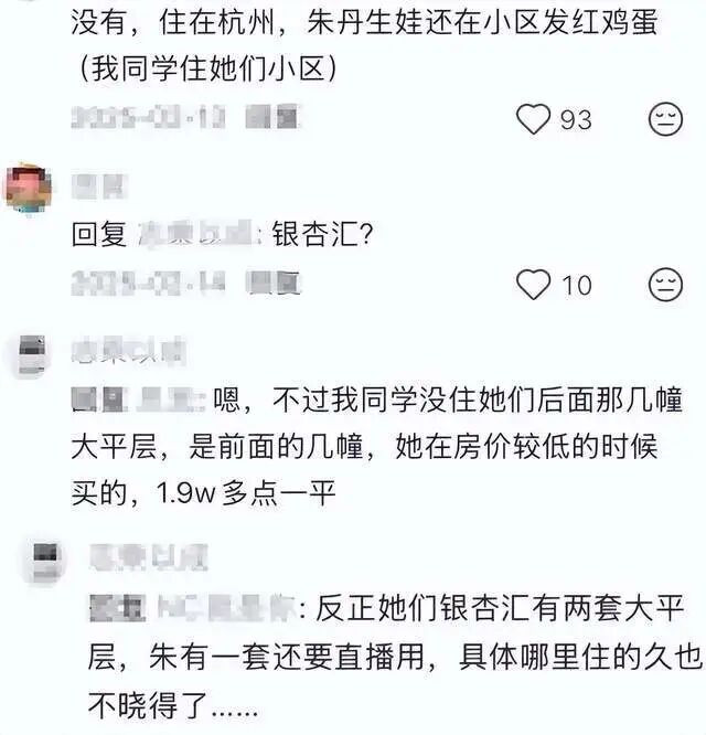 话说回来,每次被偶遇到送孩子上学都是步行的朱丹周一围,想来他们就住在这附近。而在评论区有网友就透露称同学与朱丹住一个小区,当初朱丹生二胎儿子时还在小区发红鸡蛋。