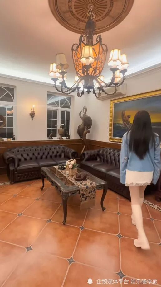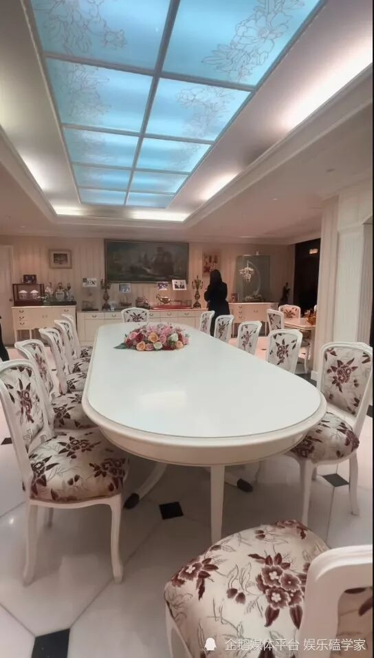 视频中,故居玄关气派非凡,白色大理石地面的圆形拼花尽显雍容。墙边金色雕花椭圆镜与玄关桌散发欧式宫廷气息,宽敞的宴会厅内,数十人圆桌搭配巨型水晶吊灯气势恢宏。角落的黑色三角钢琴与酒红色皮沙发相得益彰,弧形楼梯串联上下空间,尽显建筑精致。
