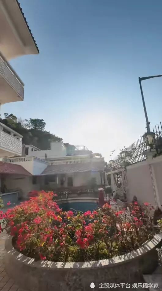 此外,视频还展示了中式书房,深色实木雕花办公桌与太师椅沉稳大气,博古架陈列珍贵摆件与何鸿燊的奖杯,书法作品添文化底蕴。夜景中,带水中照明的私家泳池环绕绿植,景致优美。