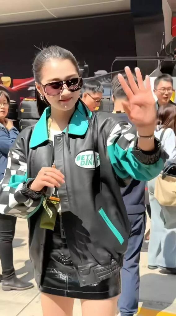 整体摒弃了冗余装饰,完全呼应了F1赛道的速度与力量美学。路人镜头下的她,皮肤冷白、小头小脸的优势格外突出,偶遇者纷纷感叹“真人比镜头里更精致”,其亲和互动也频获好评。