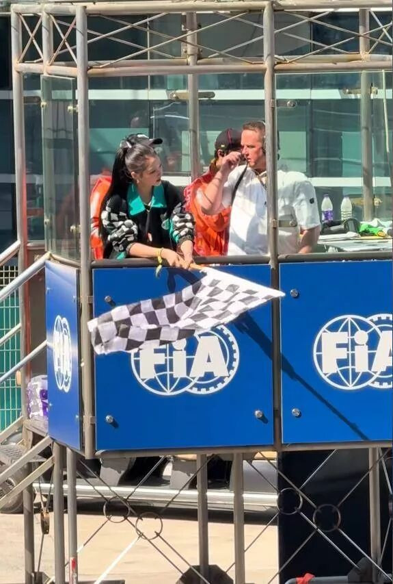 她受邀跨界参与赛事环节,亲自为F1学院赛挥动起终点格子旗。