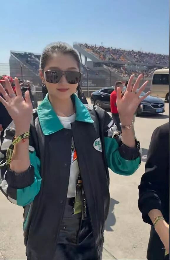 这身被网友封为“赛道在逃千金”的装扮,完美融入竞速氛围。