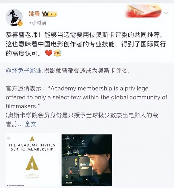姚晨跟曹郁腻歪的时候,的确也是很高调,看她为曹郁加油打气,庆祝自己老公得奖,还亲切的称呼为“曹老师”,可见,当时他们有多么的恩爱!