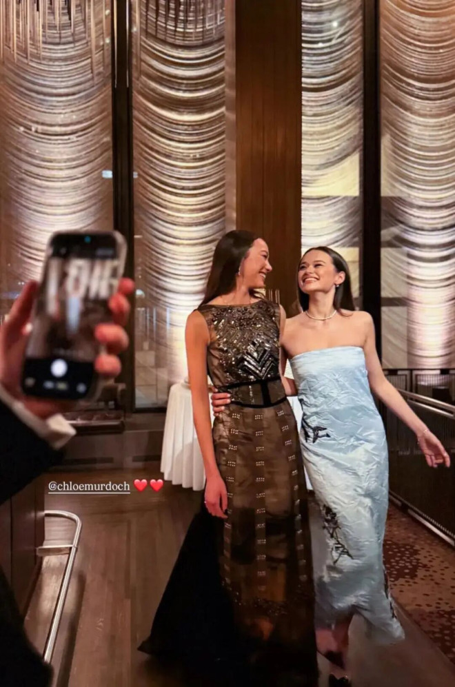 姐妹俩还跟默多克及其现任妻子埃琳娜、“接班人”拉克兰合照了,