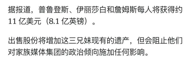 接班人拉克兰用33亿美元和三位哥姐“和解”,