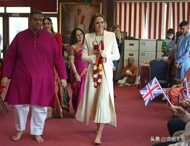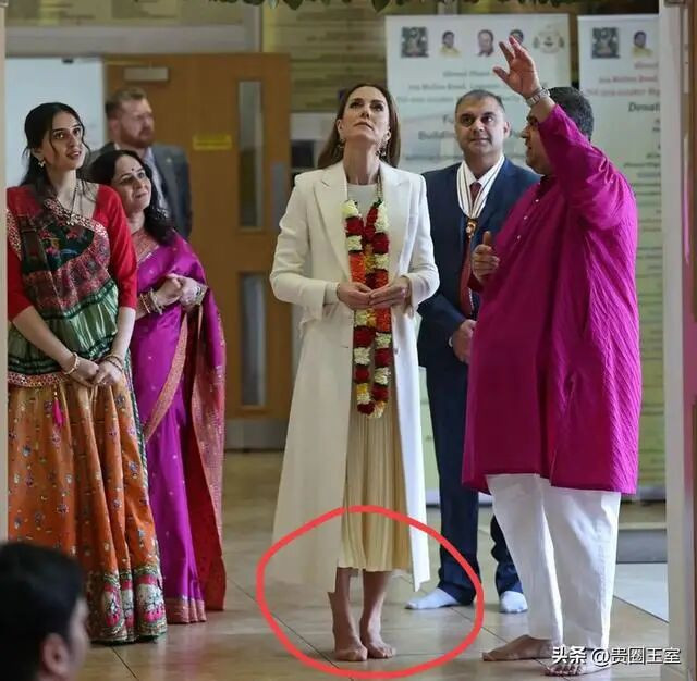 凯特王妃在访问Shreeji Dham Haveli印度教寺庙期间,按照习俗,她脱掉了高跟鞋,就是这一举动,暴露了她的生理特征。