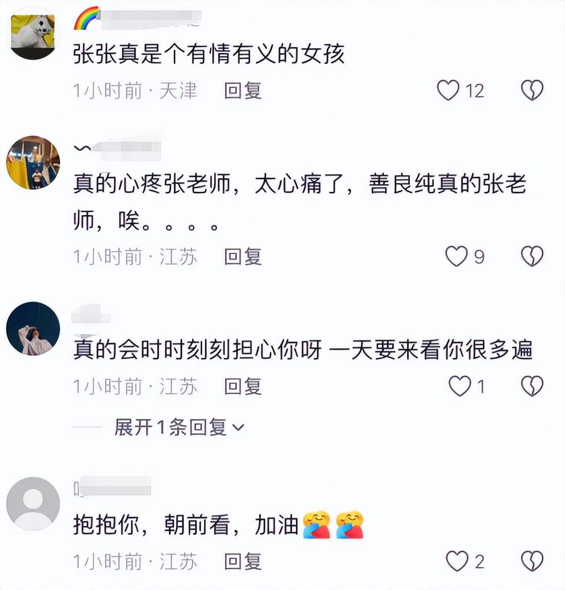 看到这样一张憔悴又悲痛的面庞,不少网友在评论区为张张送上安慰,很多网友都表示张张这一路走来经历了太多是非,真的是相当不容易,在此节点下,张张发声维护张雪峰,足以看出她是重情重义之人。