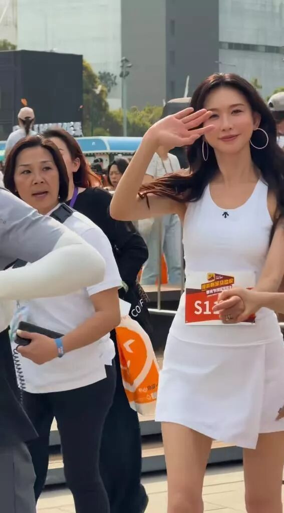 她身穿一套简约的白色运动装,在慢跑中肩颈线条平直舒展,腰腹紧致不见丝毫赘肉,步伐轻盈利落,整个人显得挺拔而充满元气。即便在路人随手抓拍的生图里,她白皙紧致的肌肤和高挑出众的身形在人群中依然瞩目,与同框的黄晓明、阿Sa等明星相比,其体态优势明显,被赞“优雅与元气并存”。