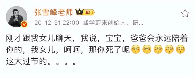 感情内的是是非非,旁人本身就难以说清,但在父亲这个身份上,张雪峰应该算得上杰出模范,愿张姩菡能够平安顺遂的长大成人,相信她最爱的爸爸会一直在天上庇护着她。