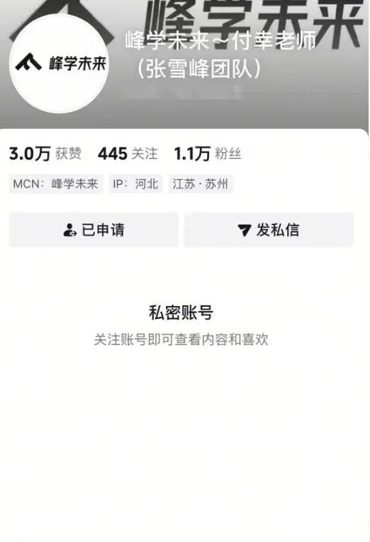 关于两人的真实关系目前无法确定,两人也没有对外承认,只不过在张雪峰去世后,付幸将账号设成了私密,合影头像也换掉了。