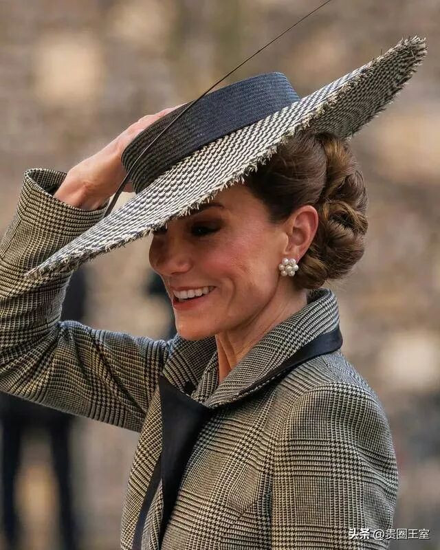 当天凯特王妃的造型优雅大方,粉丝评价又是很出圈的一身搭配,她身穿威尔士格纹格纹羊绒大衣搭配千鸟格草帽,脚穿黑色尖头高跟鞋。盘发也非常精致,相对而言,王妃偏爱礼帽配盘发,若能将王冠与盘发结合,想必会更加惊艳。
