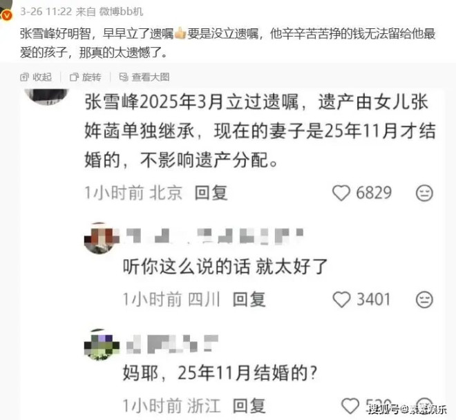 网友说去年3月张雪峰就立过遗嘱了,遗产由女儿单独继承,真的是把所有的爱都给了女儿。