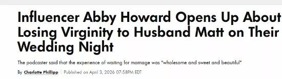 据美国《人物》杂志报道,巨星艾比·霍华德近日公开了自己坚持婚后才有性生活的经历,并为新婚夫妇分享了一些建议。