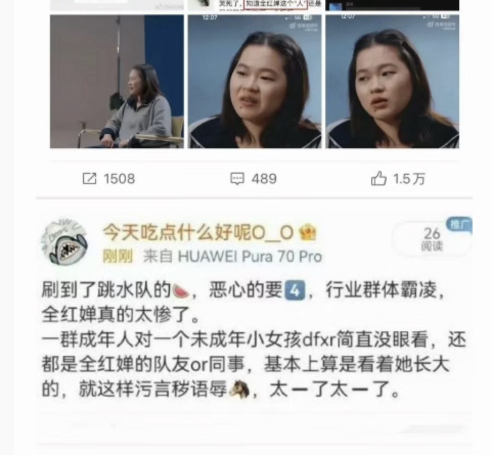 前几天,全红婵接受专访中哽咽,恳求公众停止对她及家人的网络暴力。