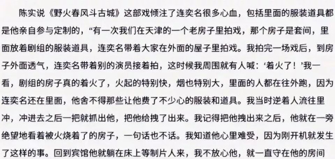 两人在电视剧《野火春风斗古城》片场相识。 连奕名那时候正在全力扑自己的导演处女作,从选角到道具都亲力亲为。