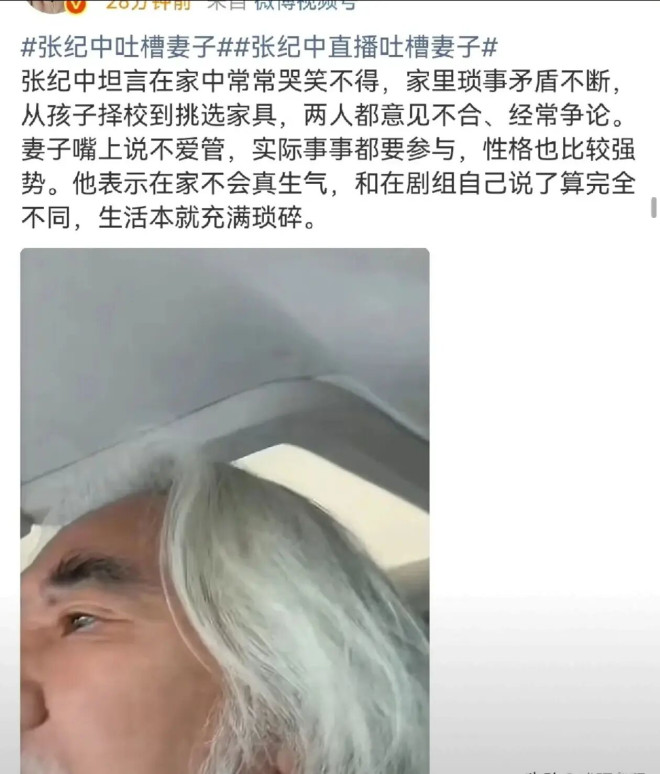 前两天,已经75岁的张纪中连夜上了热搜,这一次张纪中直接在车里开启直播,吐槽起了自己的媳妇杜星霖,他直言自己的媳妇太强势了,啥都要管。