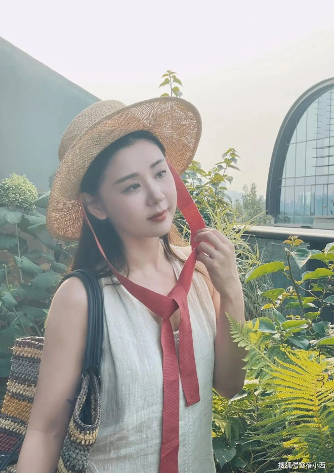 此外,她还搭配了一顶宽檐草帽,修饰了脸型,增加了氛围感,和连衣裙的风格也很适配,红色的系带在胸前打结,看起来更是格外的吸睛,增加了一些俏皮感和活力感。