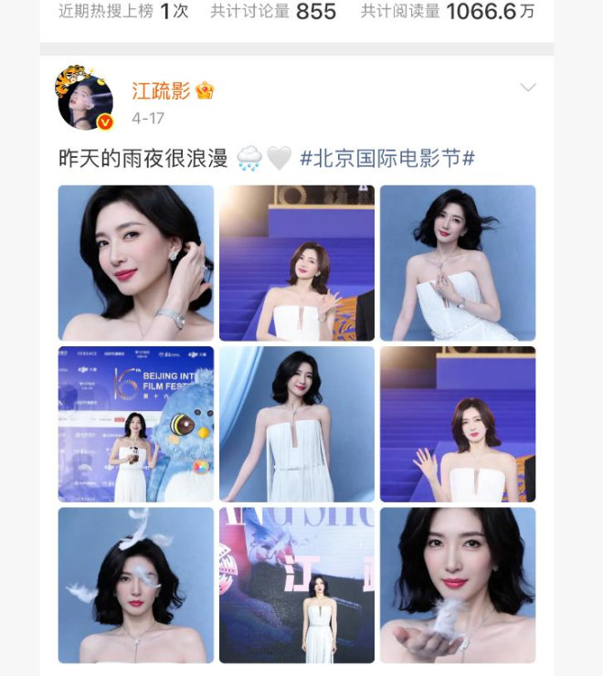现状如今的她虽然低调,但是一直在圈内活跃,4月17日,江女士在社交媒体上,晒出自己参加北京电影节的照片。