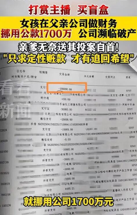 在采访中,小梦的爸爸透露,他与妻子早年离婚,小梦一直跟随他生活,小梦念了一年中专后便离开校园,鉴于小梦爸爸此前做生意都是雇人来管账,所以小梦在后续过程中学着管账,2023年,小梦爸爸成立公司之后,便让女儿小梦管理公司的资金。