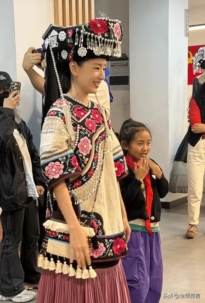 这次云南之行,也能看出她现在的生活节奏和以前不太一样了。前几天她还在社交平台上分享过爬山和看古寺的照片,穿得很简单,走在山里也没有太多摆拍痕迹。到了云南后,她又被拍到试穿当地服饰,衣服不复杂,但穿在她身上很顺眼。之后还有网友说在菜市场见到她,一件白色裙子配帽子,自己挑水果、买鲜花,和摊主聊天也很自然,完全不像在赶行程的明星,更像是在认真过日子的人。