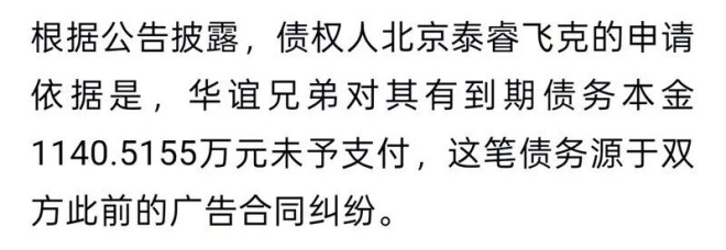 而“最后一根稻草”,只是一笔额度为1140万的广告债务。