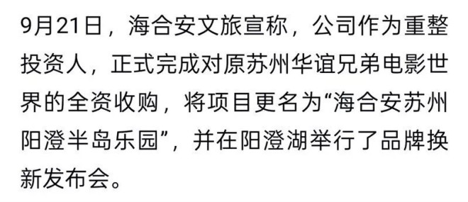 电影世界于2018年正式运营后,的确曾风光一时,可热度过后便逐渐冷清。去年9月份,华谊兄弟的电影小镇被清算重整,由海合安文旅全资收购并更名。