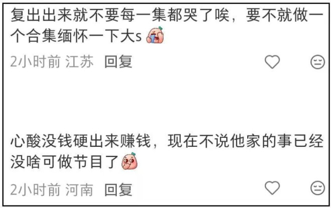 不少看着大小S节目长大的观众,对小S已是恨铁不成钢了,开始觉得她还不如不要复出算了,至少能把最美好的样子留在记忆里。