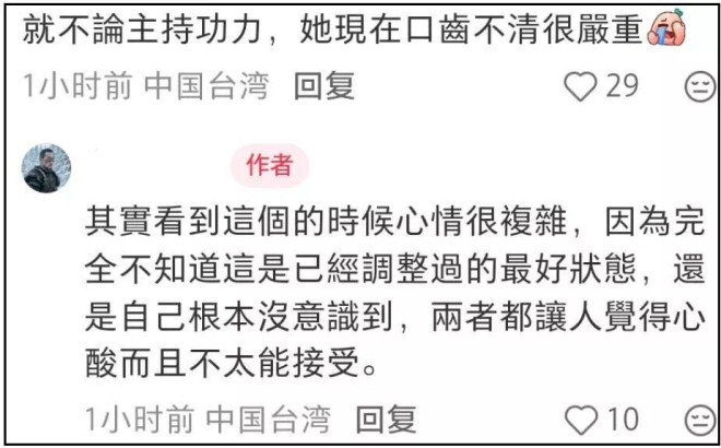 发文的业内是一名脱口秀演员,对小S并没有恶意,更多是感慨她的状态变化,希望小S尽快转型,从业内给网友回复看,他应该能联系到小S节目制作人,不知道会不会把其他网友的意见反馈给小S呢?