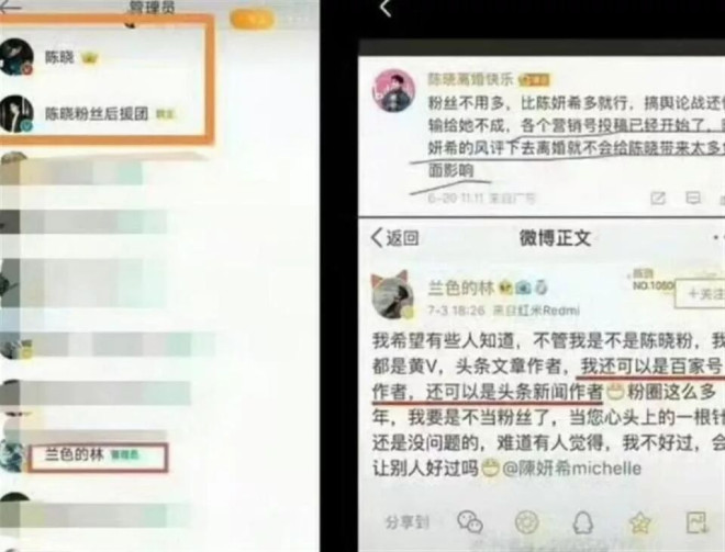 2018年4月,一个微博名叫“兰林”的账号开始活跃。她是陈晓的资深铁粉,甚至被指是陈晓粉丝群的管理员。