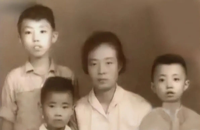 小时候的张艺谋与母亲和两个弟弟