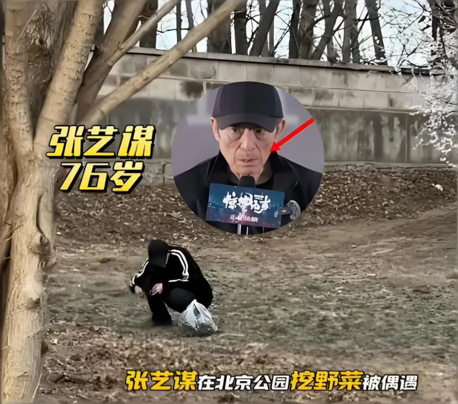 2026年3月初,张艺谋在公园里快走结束,拎着袋子挖野菜,然后回家让岳父母包饺子。